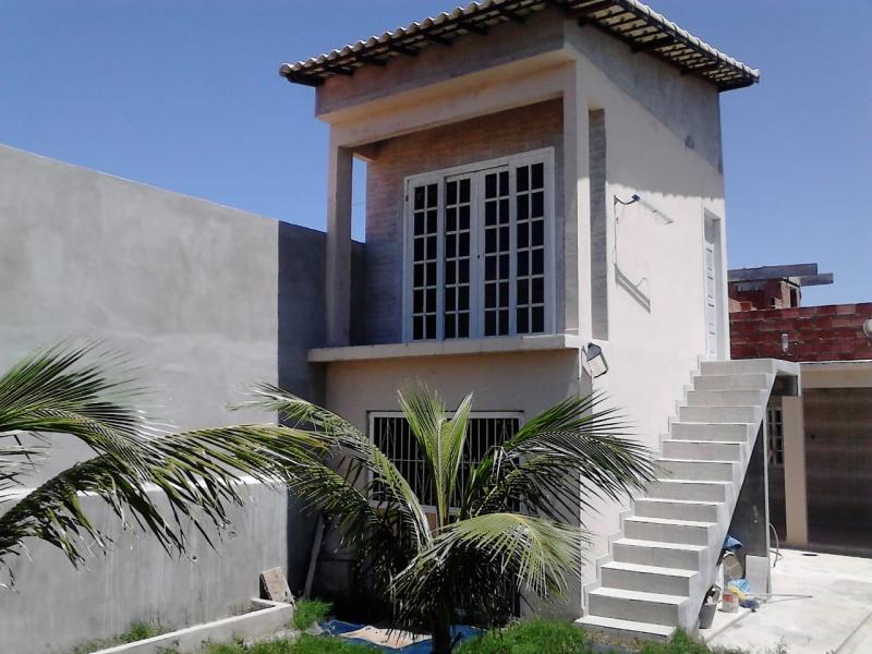 Embaixo: Sala grande, quarto com ar condicionado, cozinha grande com armário e banheiro grande com dois chuveiros e varanda com churrasqueira, sofá, pia, mesa de corte de churrasco e na parte de cima: Casa menor, com dois cômodos e espaço para construir na lateral da laje. Jardim com espaço para até 5 carros, com coqueiros e espaço para plantar, tendo em frente a piscina com suíte com quarto e banheiro separado e embaixo da suíte, u m quarto grande, além do salão aberto de jogos em frente a piscina com sinuca e totó. Próximo ao comercio. Rua segura. Grande oportunidade. Direto com proprietário. Nada de imobiliária.